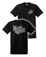 Heavy Goods Old English Logo T-shirt, black with white print OG logo to front and Old English logo to back.