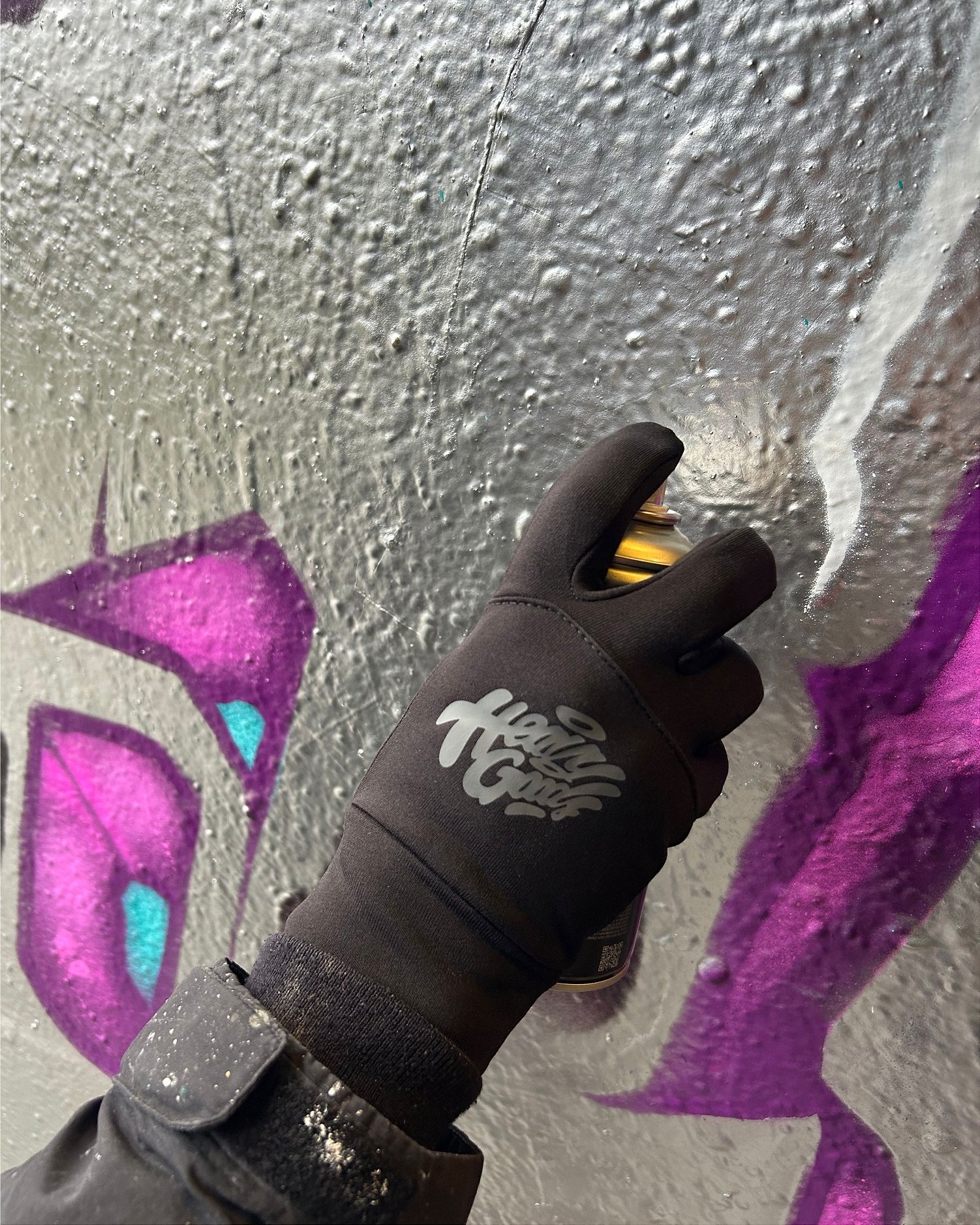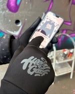 Heavy Goods Tech Gloves , black with dark grey or white print to top of glove.