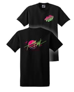 Heavy Goods x Bonzai , t-shirt black with flamingo pink/Miami green logo to front and back. Limited Edition.